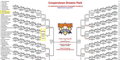 Dreams Park also has no grading and separation of teams by ability, no pitch limits despite playing six to ten full six inning games with no time limit over five days and allows bats illegal in every other promotion. They play on a 200 foot field which can make for some silly games as far as HR totals.