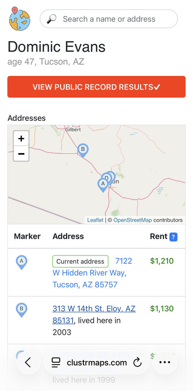 Tommaso's bandmate Dominic lives south of Tucson 7122 West Hidden River Wy, Tucson, AZ 85757-8201