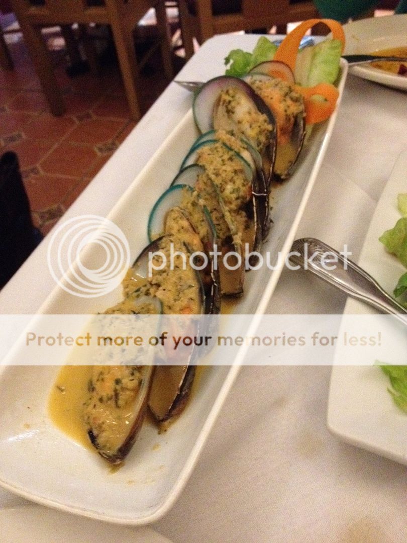 We also ordered a bottle of the red sangria. The shrimp and the sprouts were out favorite. For all you garlic lovers, these two dishes were loaded with it. The sprouts were cooked in a roasted garlic so there was a subtle sweet and nutty flavors to balance the red chilis. The shrimp were with fresh garlic. We had plenty bread for dipping. The ceviche was good but flavors were a bit subtle. Mussels were huge and the lemon vinegarette was refreshing.