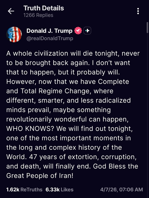 re: Trump Warns Iran ‘Whole Civilization Will Die’