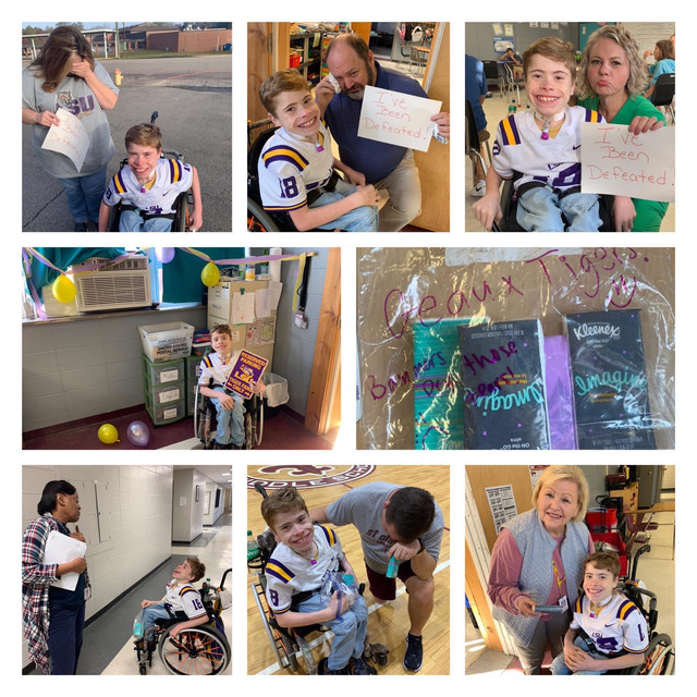 Alabama's biggest LSU fan has been handing out tissues and signs to his teachers at school this morning! See FB post below from his mother: