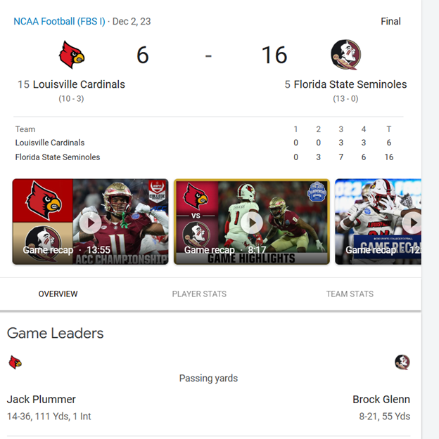 16-6, lol - don't act like it was a beat down. And he threw for 55 yards. you are being purposefully obtuse by ignoring real facts. And to be clear, I thought FSU should not have been left out. I'm just pointing out the clear differences here and that situation.