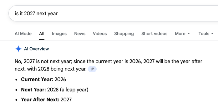 Dude, this is literally my screenshot from yesterday. Google AI isn't exactly top tier.