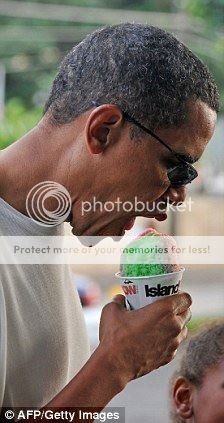 C'mon man! This is too easy! Obama eating a sno-ball!