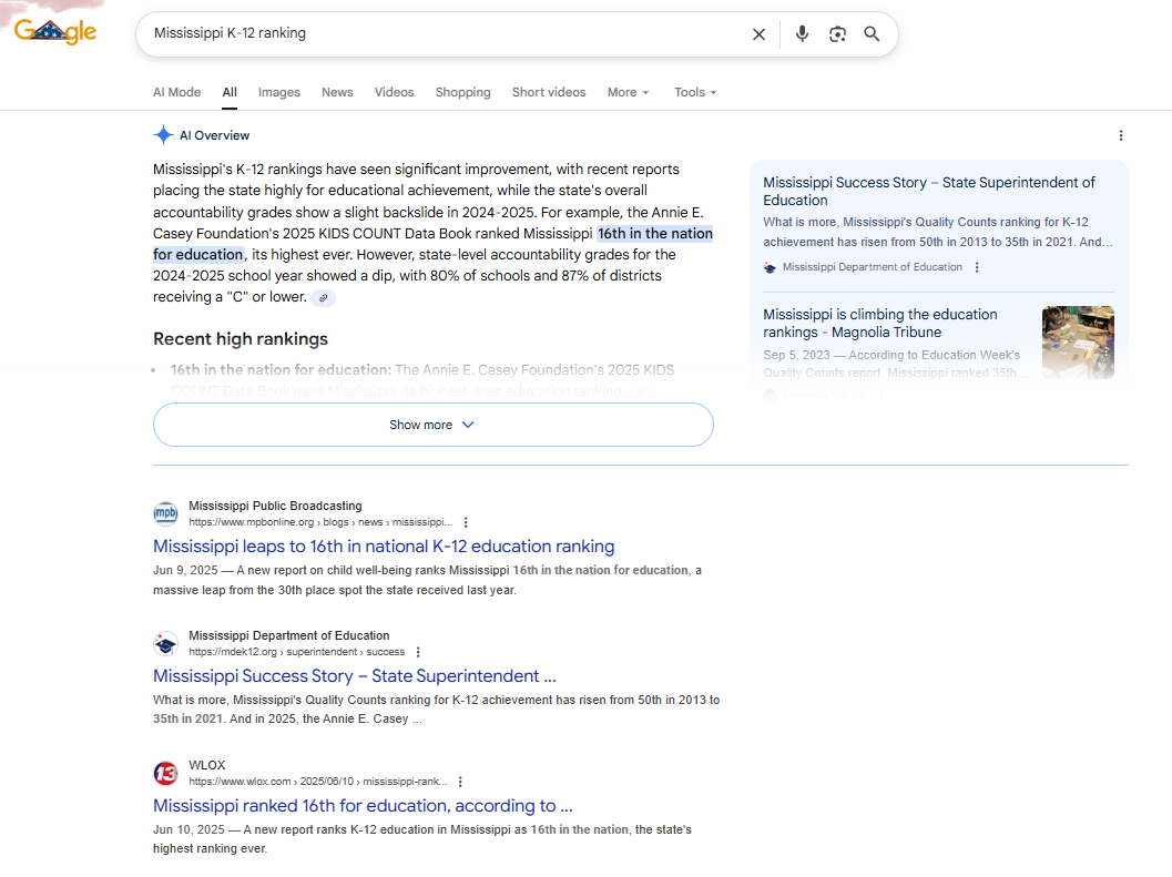 Most universities are built around in-state students, finally the Mississippi schools are going to have higher educated incoming freshmen. There is no denying how bad Mississippi was historically, but we can all celebrate a change to the positive and look forward to what the change might to do for the state.